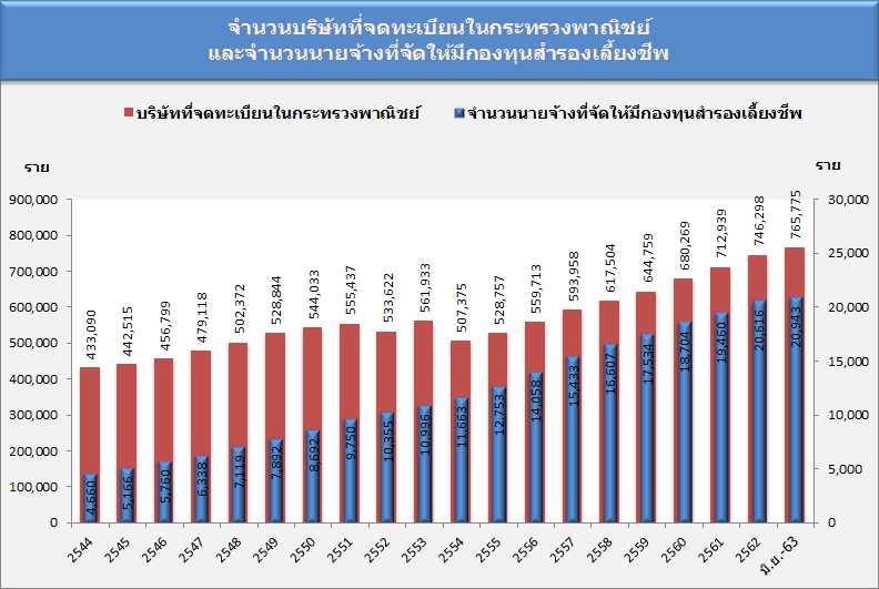 จำนวนบริษัทสมาชิกกองทุนสำรองเลี้ยงชีพเทียบบริษัทจดทะเบียนที่กระทรวงพาณิชย์ และจำนวนนายจ้างที่จัดให้มีกองทุนสำรองเลี้ยงชีพ